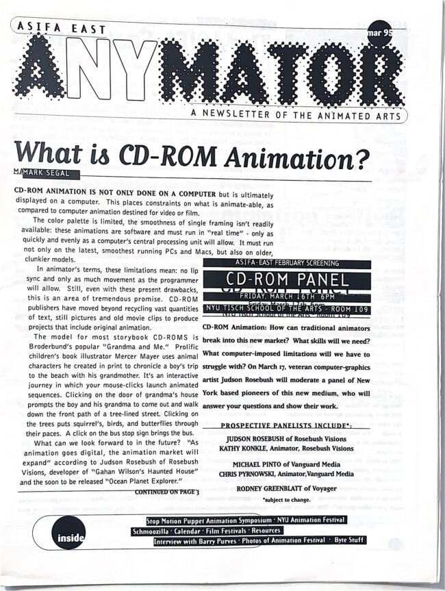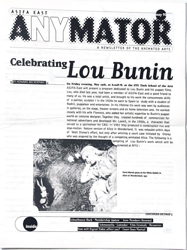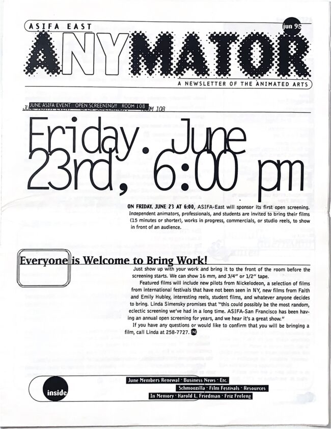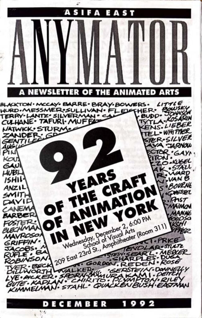 The ANYmator, has a long and storied history that extends beyond its current incarnation and back into the analog era. Enjoy a selection of vintage editions scanned by ASIFA-East’s resident archivist and historian, Hugo.